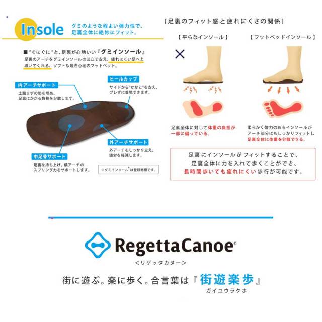 柔らかいインソールが足にかかる衝撃を吸収してくれるので疲れにくい。