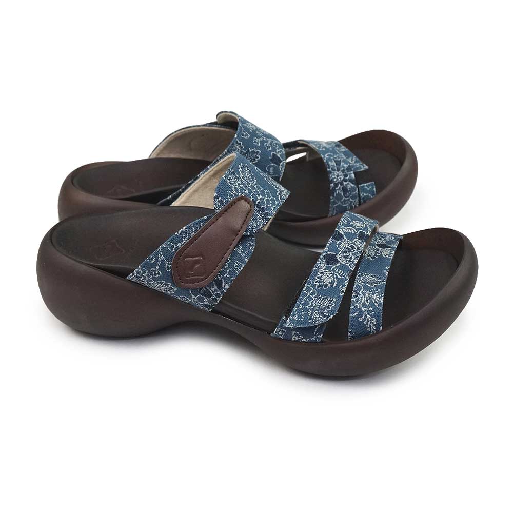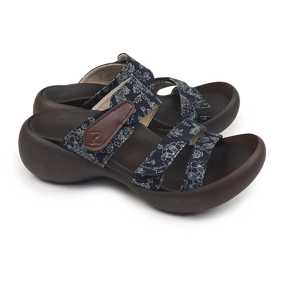 カジュアル かわいい おしゃれ 和風 菊 花柄 4.5cmヒール 履きやすい 歩きやすい 3本ベルト つっかけ 3E ゆったりサイズ 痛くない グミインソール 母の日 敬老の日 プレゼント ギフト