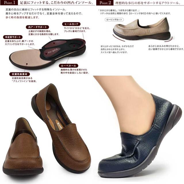 リゲッタのロングセラー商品です。とても軽くてスイスイ歩ける、足に優しくて歩きやすいシューズです。