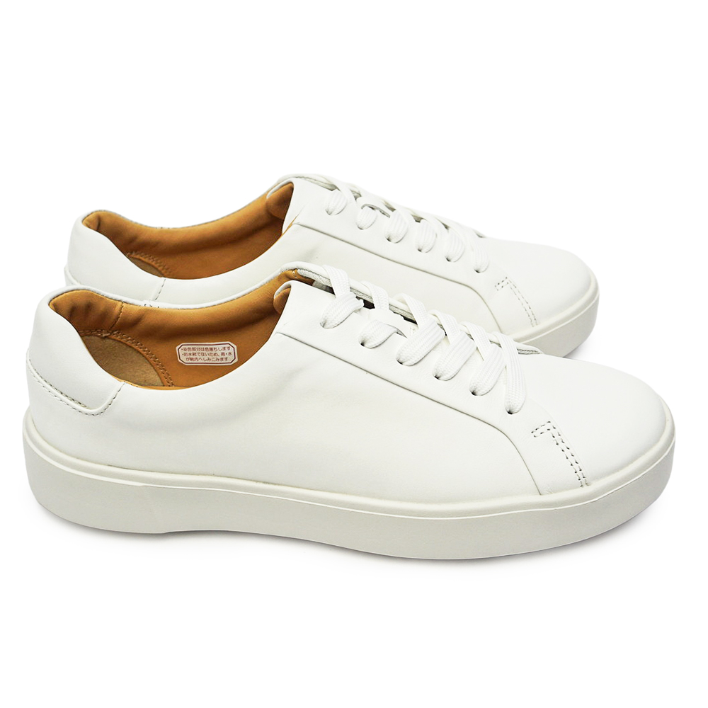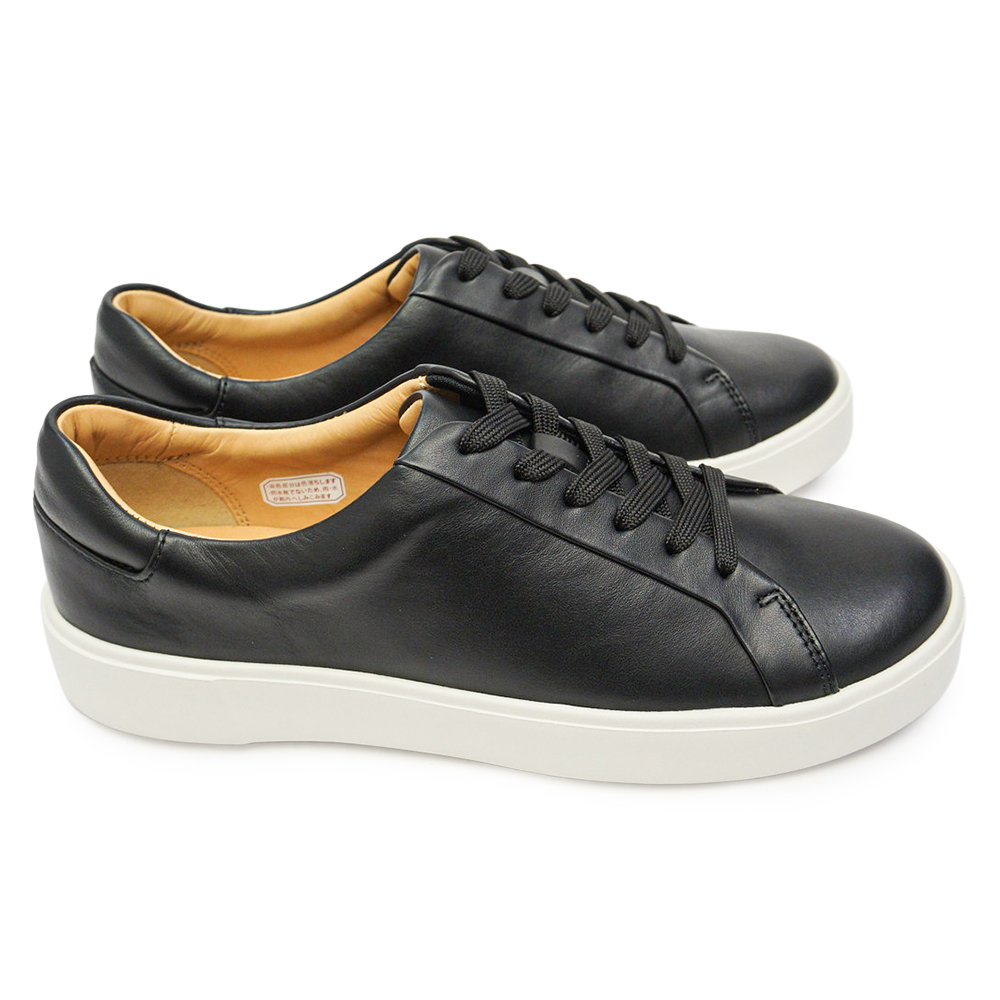 上質なレザーの質感と、スニーカーのような快適さを両立した大人のための一足。シンプルで無駄のないデザインは、パンツにもスカートにも合わせやすく、