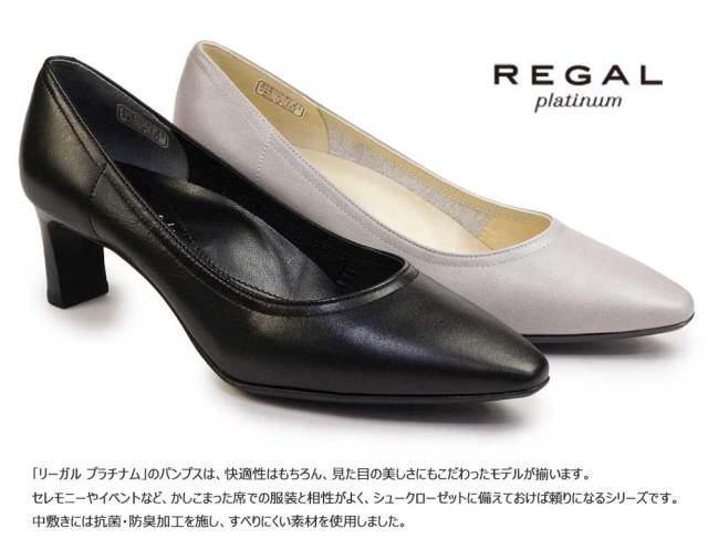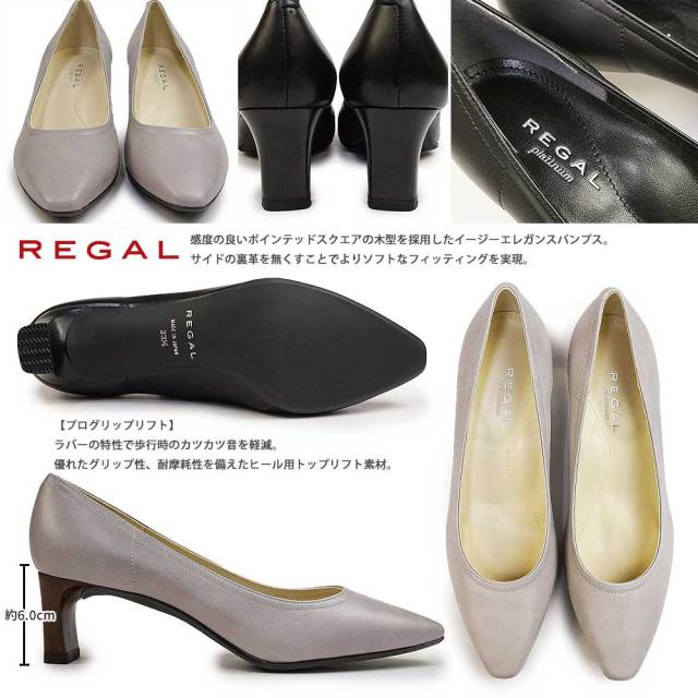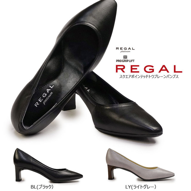 リーガル レディース パンプス 靴 黒 ライトグレー ポインテッドトゥ オフィス カジュアル 通勤 甲深 綺麗め 日本製 クラシック ベーシック