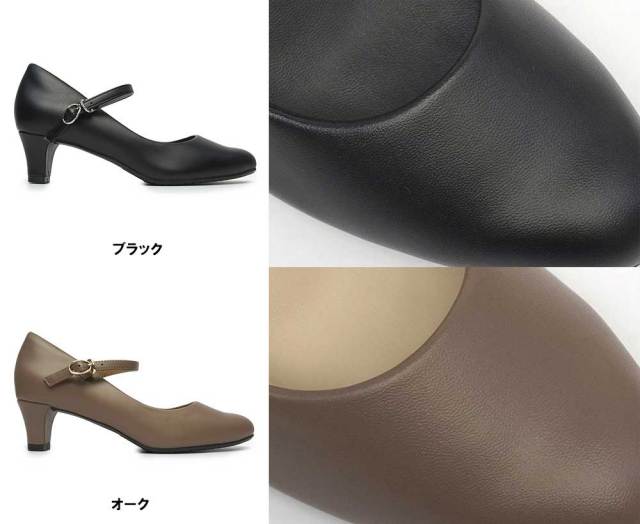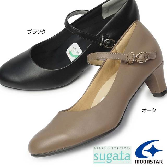 ムーンスター スガタ パンプス SGT510 レディース 3E ストラップ付 ワイド ブラック オーク