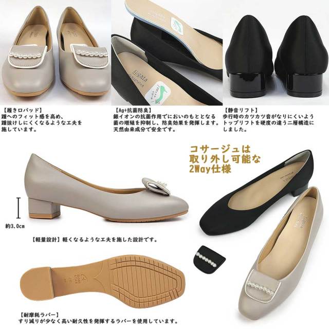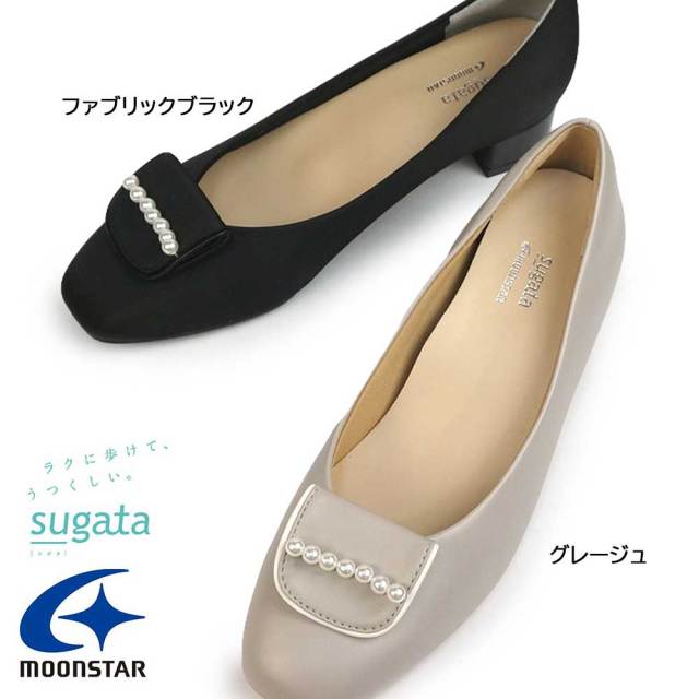 ムーンスター スガタ パンプス レディース 靴 3E ワイド セレモニー 卒業式 入学式 卒園式 入園式 結婚式 冠婚葬祭 フォーマル パール 2Way コサージュ MOONSTAR