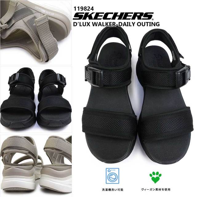 スポーツサンダル 119824 レディース サンダル 軽量 厚底 デラックスウォーカー リラックスドフィット ストラップ 洗える 黒 ブラック トープ ビーガン マシンウォッシャブル 洗濯機 軽量 普段使い 夏 サマー 女性用 婦人