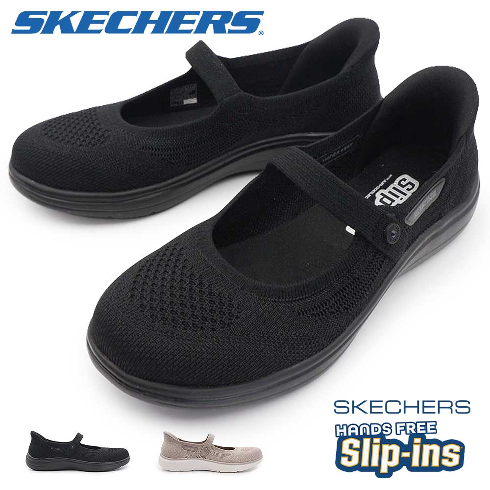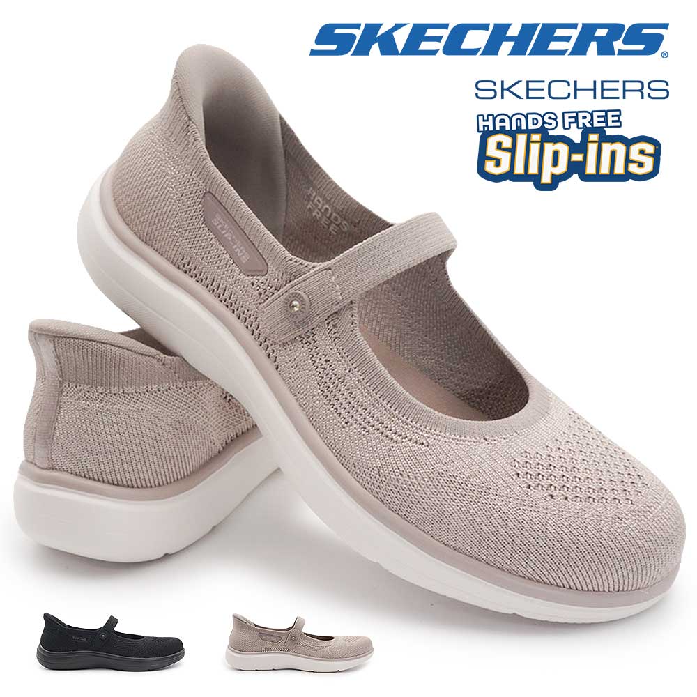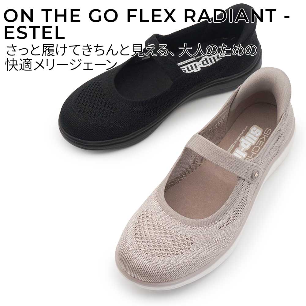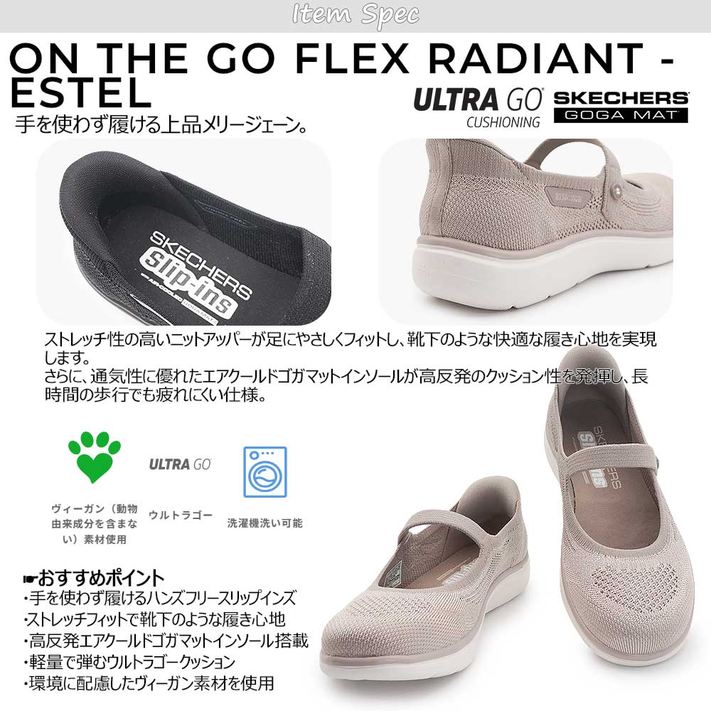 さりげないスタイルと抜群の履き心地を兼ね備えた、スケッチャーズ ハンズフリー スリップインズ:オンザゴー フレックス ラディアント - エステル。独自のヒールピローデザインを採用したヴィーガン(動物由来成分を含まない)素材のスリップオンメリージェーン。