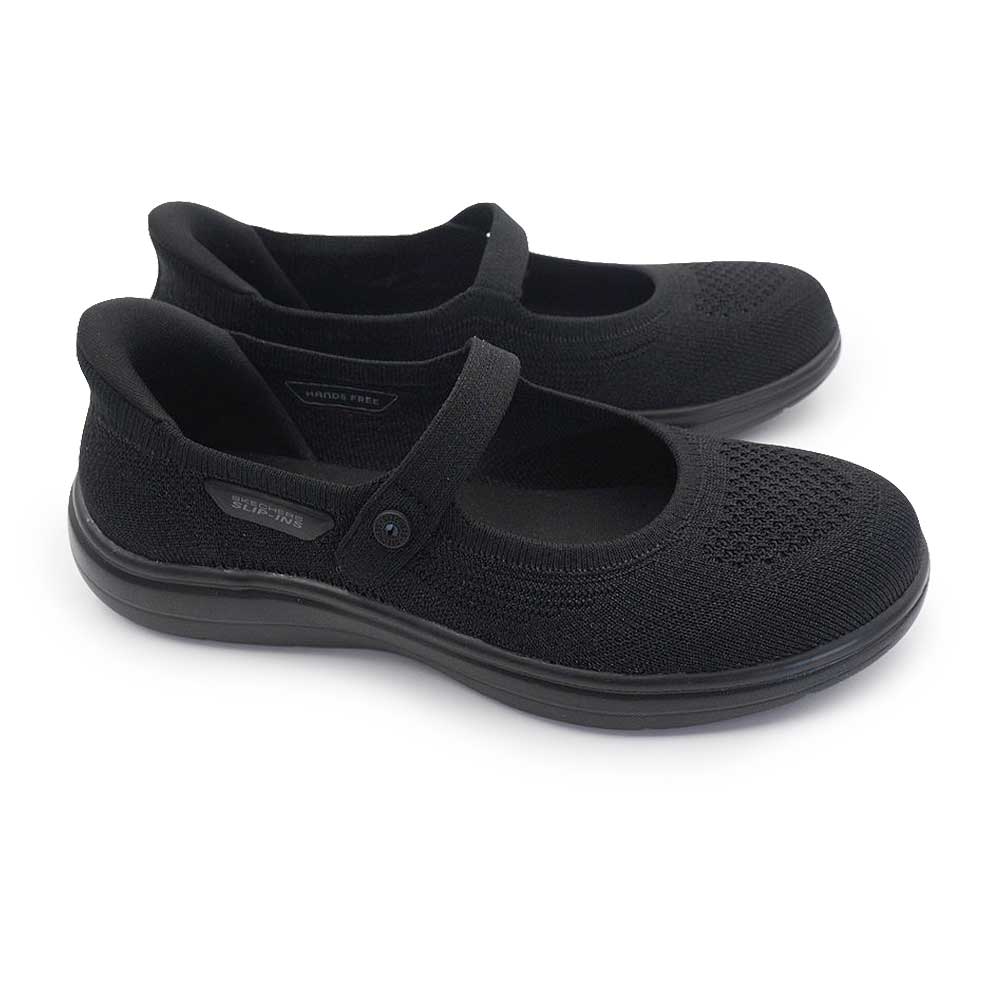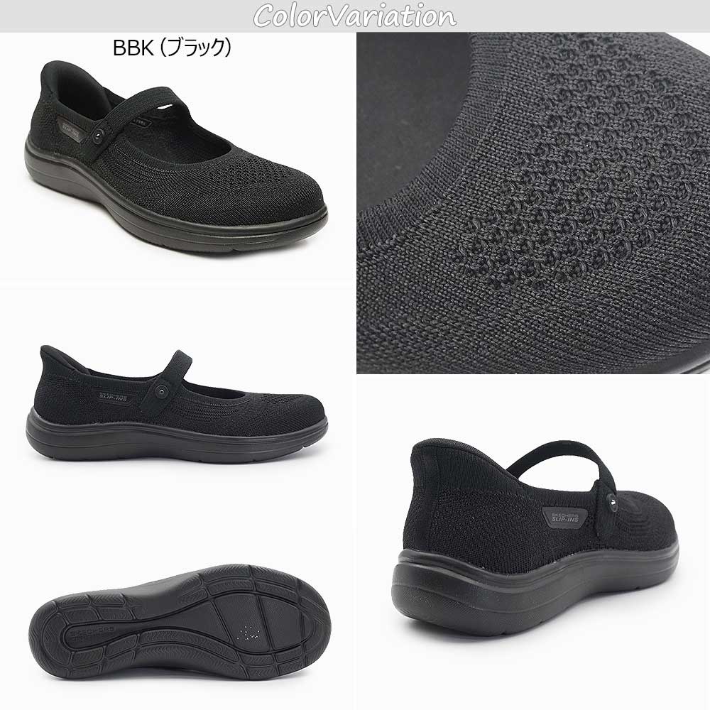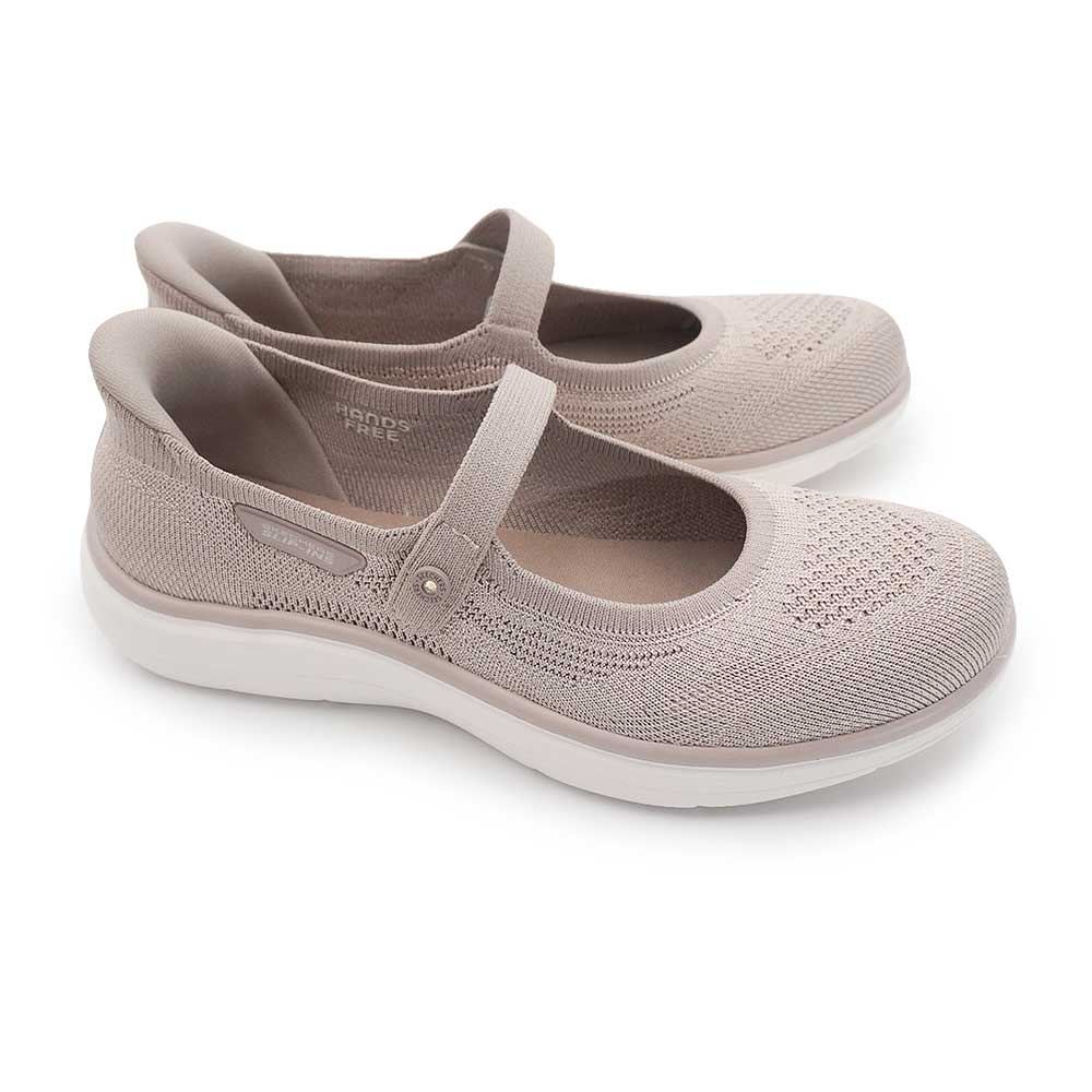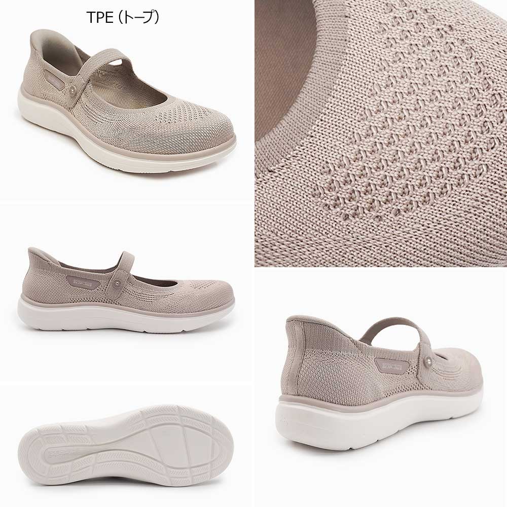さりげないスタイルと抜群の履き心地を兼ね備えた、スケッチャーズ ハンズフリー スリップインズ:オンザゴー フレックス ラディアント - エステル。独自のヒールピローデザインを採用したヴィーガン(動物由来成分を含まない)素材のスリップオンメリージェーン。