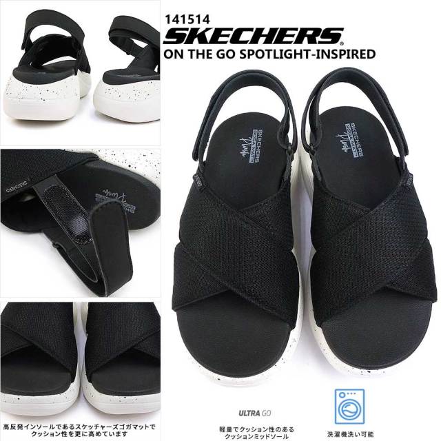 レディース サンダル 軽量 厚底 オンザゴースポットライト バックストラップ 洗える ゴガマット 黒 ブラック マシンウォッシャブル 洗濯機 普段使い 夏 サマー 女性用 婦人 シンプル