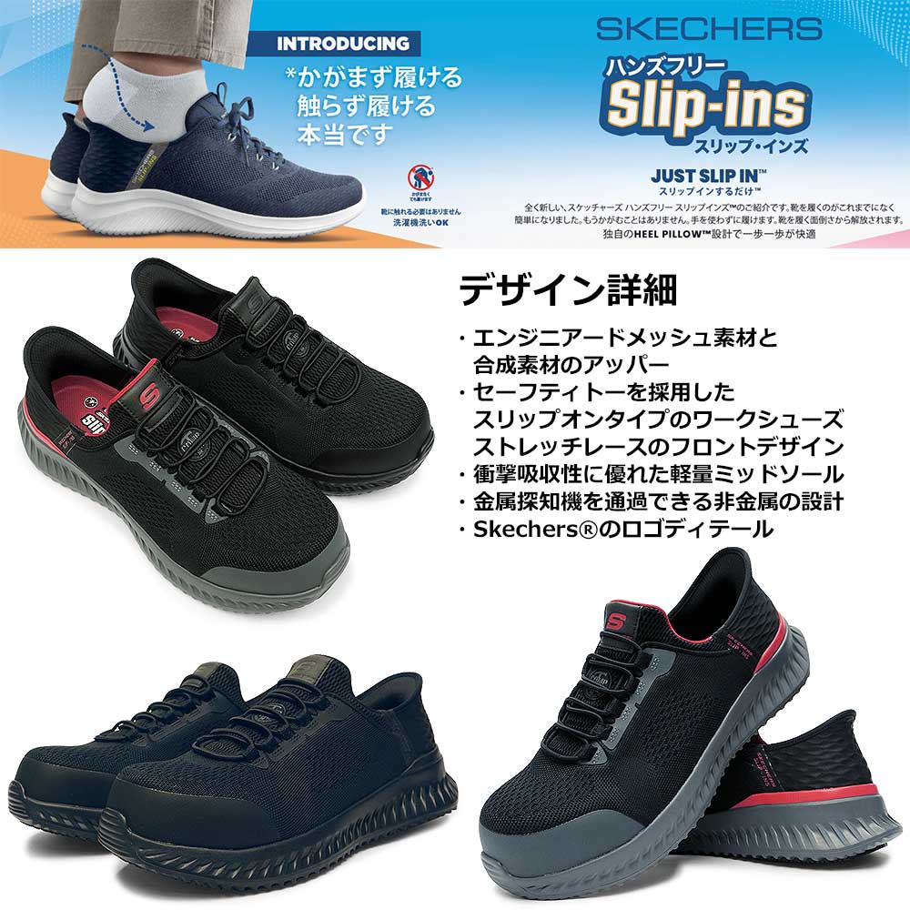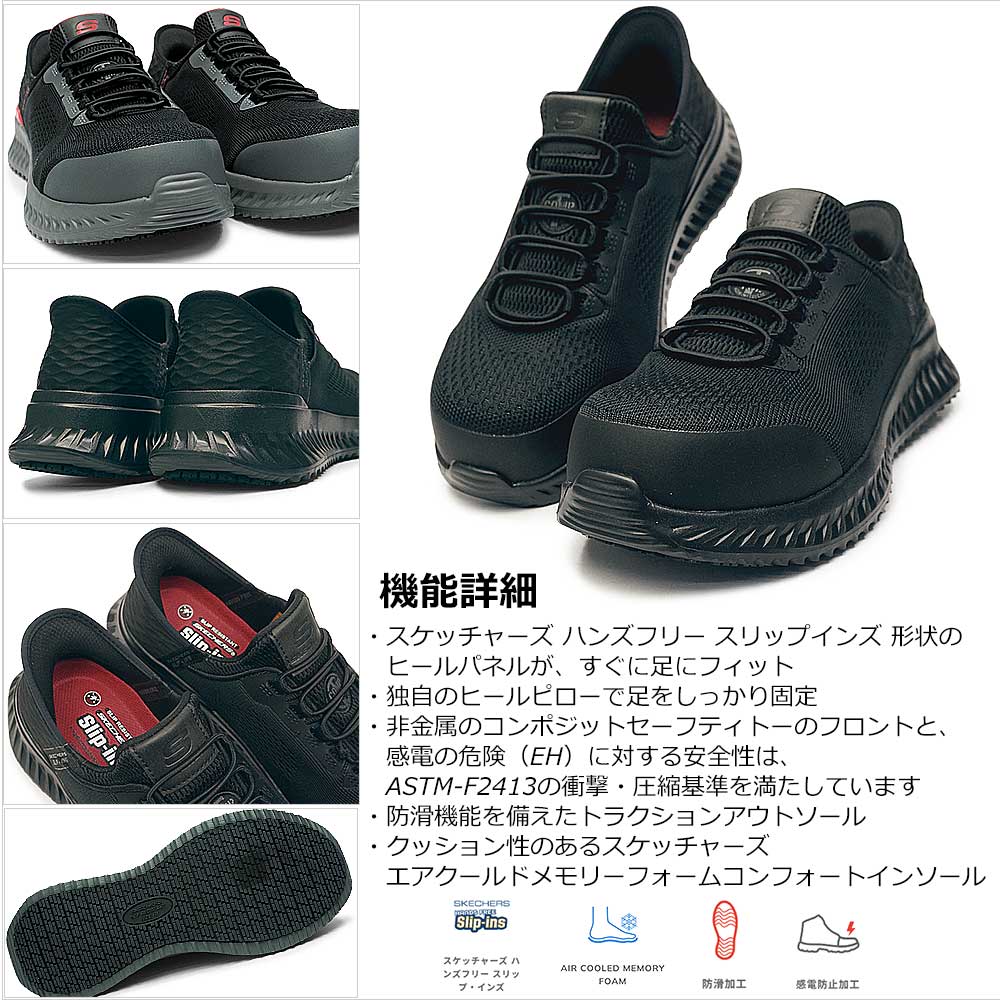 防滑加工 感電防止加工 滑りにくい ワークシューズ スリップオン 黒 ブラック BKRD BLK 手を使わずに履ける靴 手を使わずにスッと履ける 靴 プレゼント ギフト 贈り物 父の日