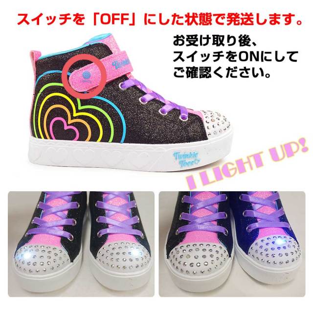 きらびやかな動きで明るく照らしていくスケッチャーズ トゥインクルトーズ:ハート ステップス-ハート グロウ。アダプティブクロージャーデザインのLEDライト付きスニーカーです。