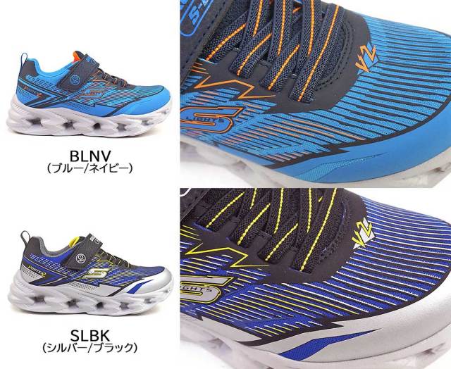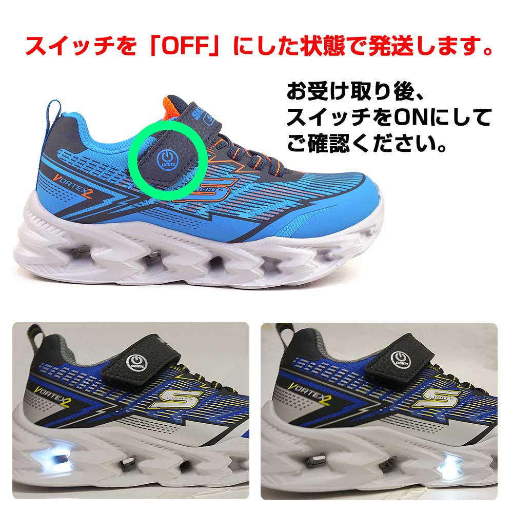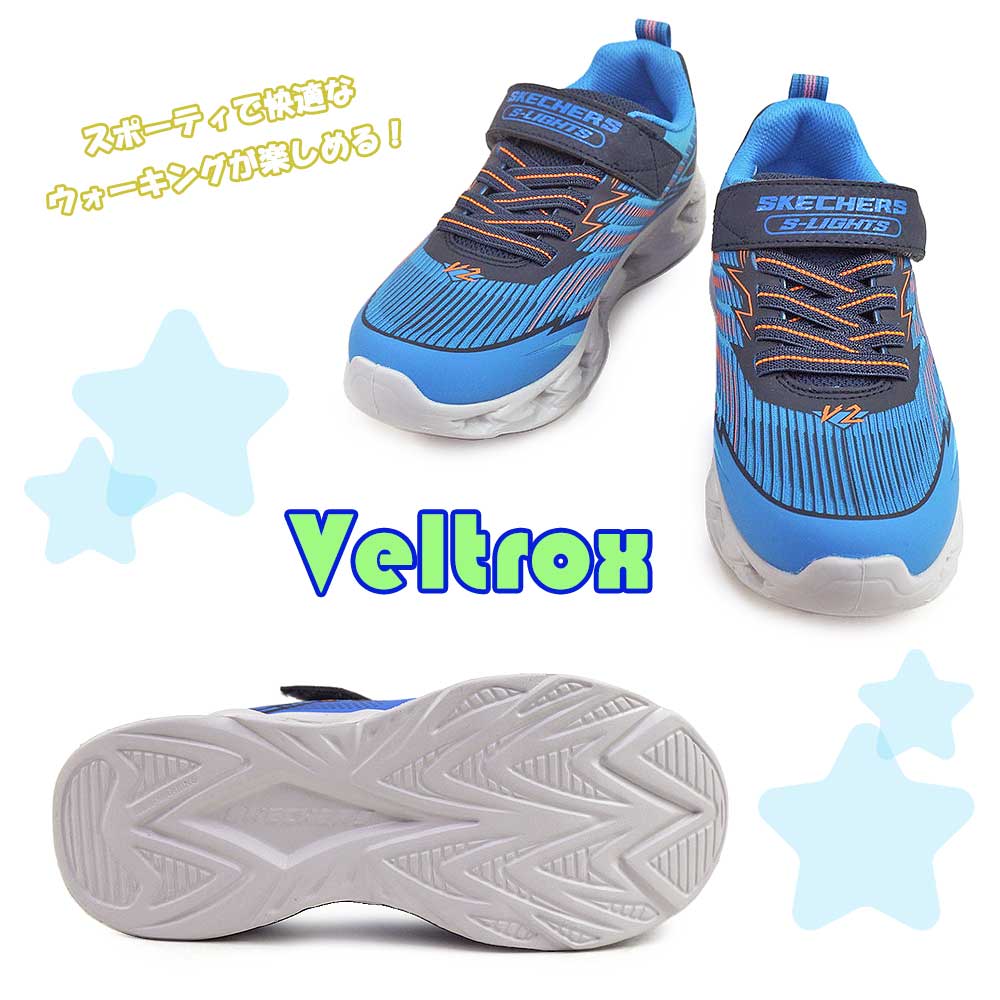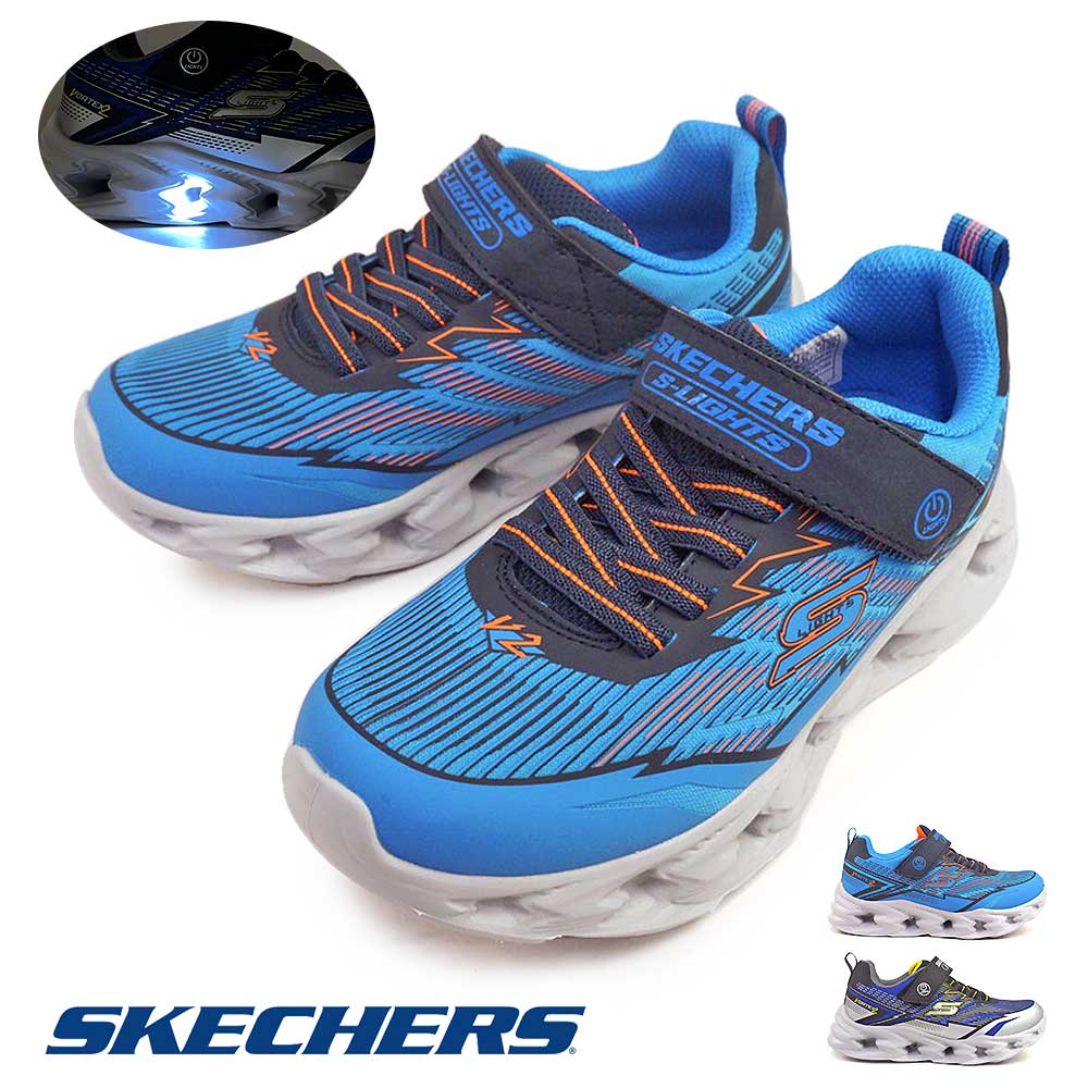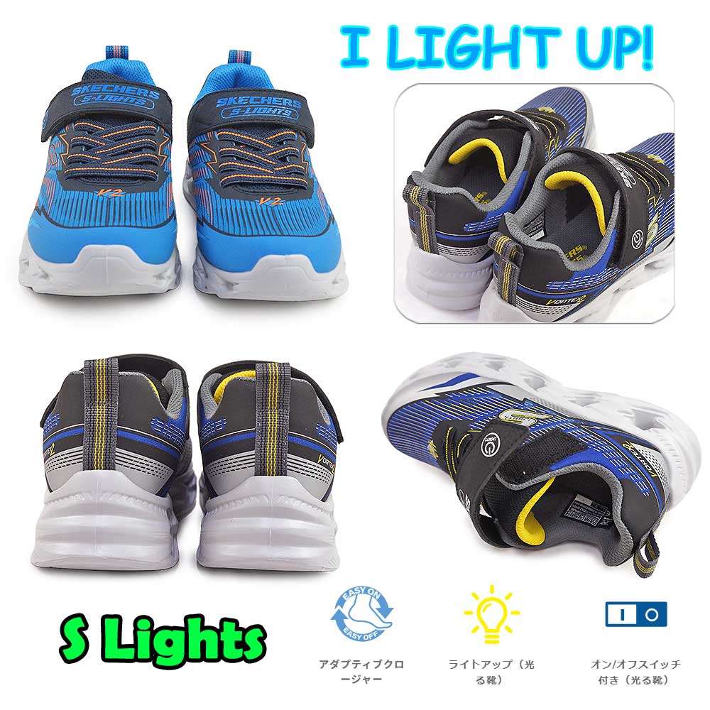 かっこ良くライトアップして遊び場で注目を集める、快適な履き心地のスケッチャーズ Sライツ: ボルテックス 2.0-ベルトロックス。スケッチャーズのアダプティブクロージャーデザインのLEDライト付きスニーカー。