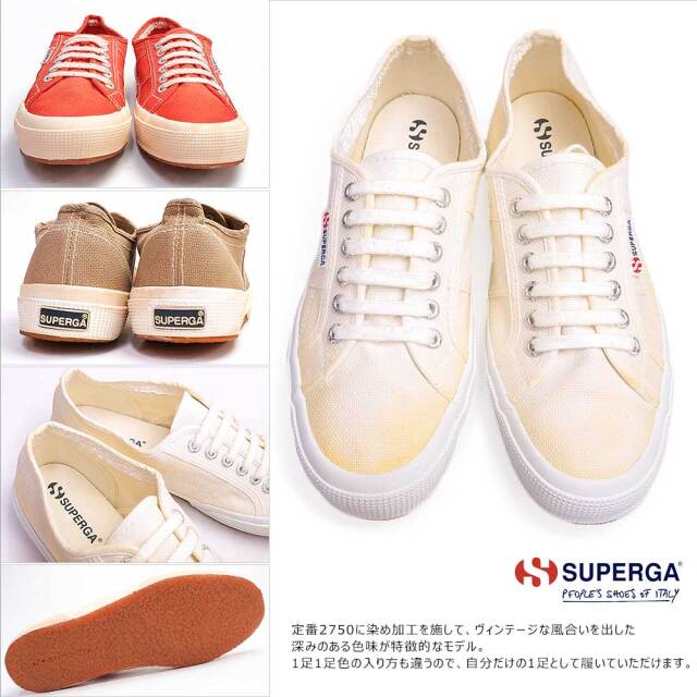 世界中のセレブも愛用する今注目のイタリアンスニーカー、「スペルガ」。バルカナイズ製法で仕上げたシンプルで完成されたスタイリングが人気です。定番2750に染め加工を施して、ヴィンテージな風合いを出した深みのある色味が特徴的なモデル。1足1足色の入り方も違うので、自分だけの1足として履いていただけます。