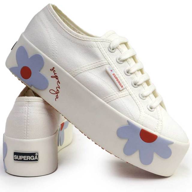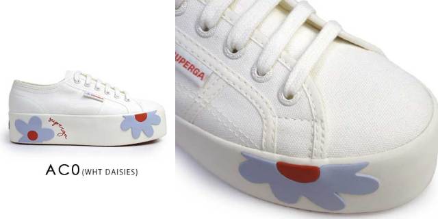 シンプルなアッパーに、デイジー柄の厚底ソールがアクセント。