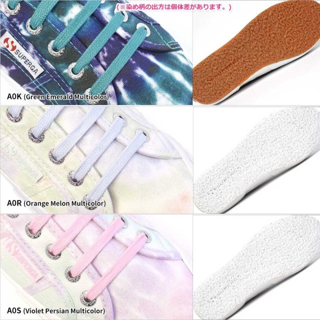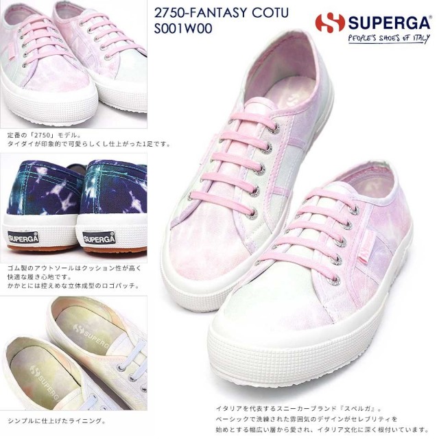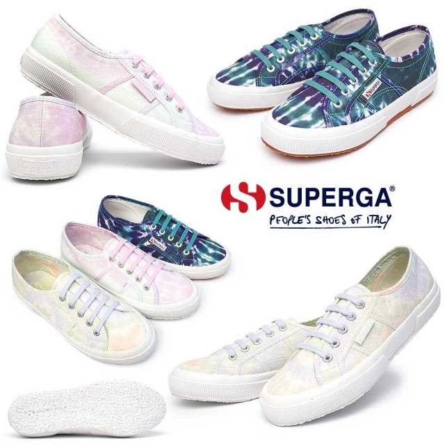在庫限り。早い者勝ち。世界中のセレブも愛用する今注目のイタリアンスニーカー、「スペルガ」。バルカナイズ製法で仕上げたシンプルで完成されたスタイリングが人気です。SUPERGAの定番キャンバススニーカー「2750」。タイダイが印象的で可愛らしくし仕上がった1足です。