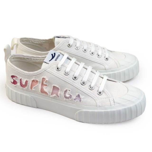 スペルガのクラシックにモダンなひねりを加えたこのスニーカーは、通気性に優れたコットンのアッパーをラバーのトゥキャップで補強し、トレンドの実用的なタッチを演出しています。 側面に破れたロゴが入ったユニークな構造により、機能性とスタイリッシュさが等しく備わっており、毎日のコーディネートに簡単にクールなアクセントを加えることができます。約3cmの厚底ソールもファッションアイテムとして魅力です。