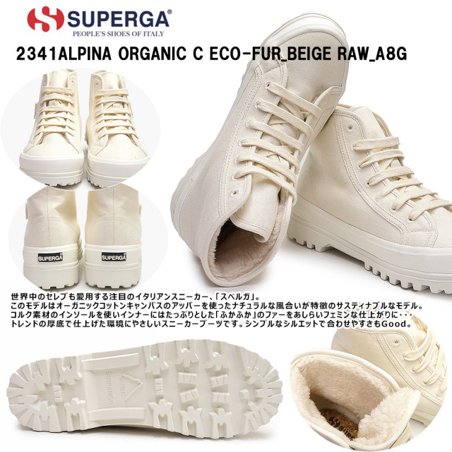 世界中のセレブも愛用する注目のイタリアンスニーカー、「スペルガ」。このモデルはオーガニックコットンキャンバスのアッパーを使ったナチュラルな風合いが特徴のサスティナブルなモデル。コルク素材のインソールを使いインナーにはたっぷりとした「ふかふか」のファーをあしらいフェミンな仕上がりに・・・トレンドの厚底で仕上げた環境にやさしいスニーカーブーツです。シンプルなシルエットで合わせやすさもGood。幅、サイズ感・・・幅表示なし(下部弊社スタッフサイズ感参照)