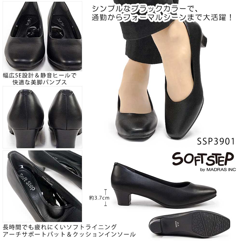 ギフト プレゼント 消音ヒール 軽量 クッション スクエアトゥ 黒 レディースパンプス ワイド 5E EEEEE 普段履き カジュアル ヒールパンプス 低めヒール 楽なパンプス 太めヒール 通勤靴 仕事靴 アーチサポート madras
