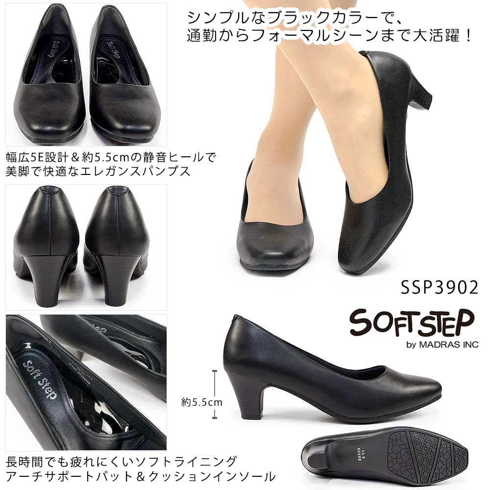 ギフト プレゼント 消音ヒール 軽量 クッション スクエアトゥ 黒 レディースパンプス ワイド 5E EEEEE 普段履き カジュアル ヒールパンプス 楽なパンプス 太めヒール 5cmヒール 通勤靴 仕事靴 アーチサポート madras