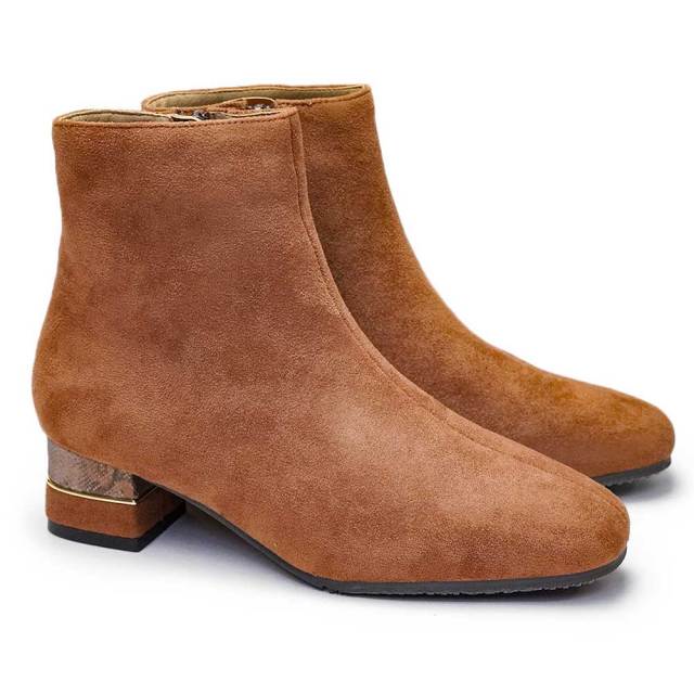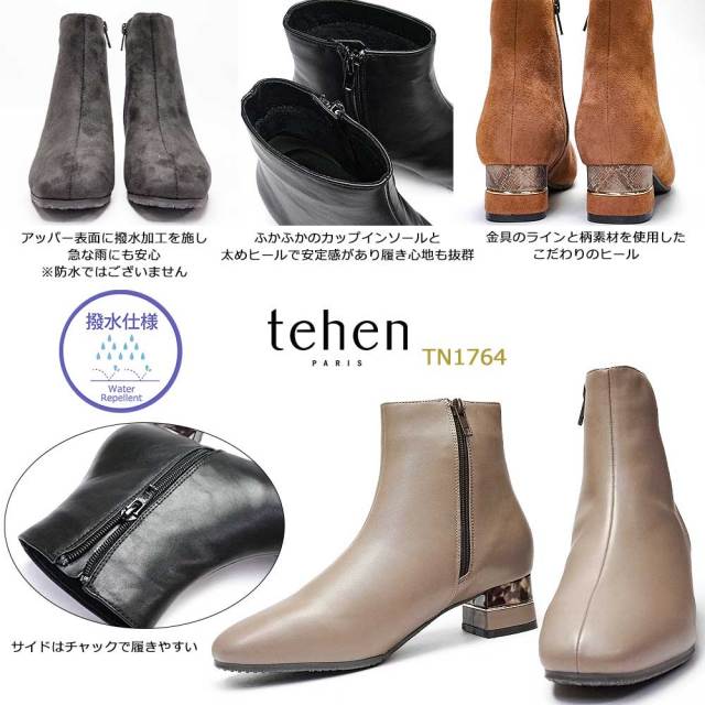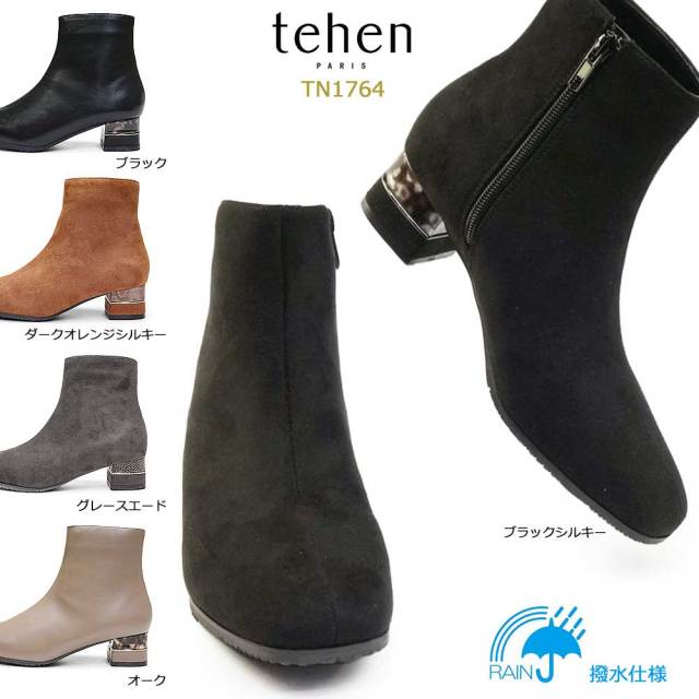 テーン 靴 ブーツ スクエアヒール ショート スエード調 蛇柄 パイソン柄 エレガント ジッパー ブラック ダークオレンジ グレー ベージュ 黒 赤茶 秋冬