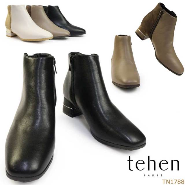テーン 靴 ブーツ スクエアヒール ショート スエード調 エレガント ファスナー 黒 秋冬 茶 かわいい おしゃれ 履きやすい 脱ぎやすい 撥水加工 婦人靴 秋冬 カジュアル 女性 通勤