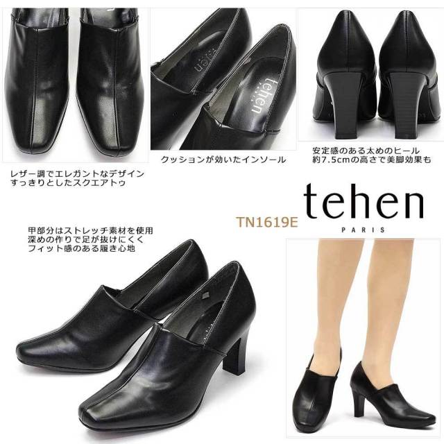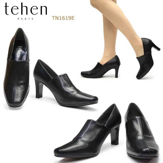 TN6611 TN1606 黒 甲深 シンプル 冠婚葬祭 21秋冬 スクエアトゥ シンプル 太めヒール