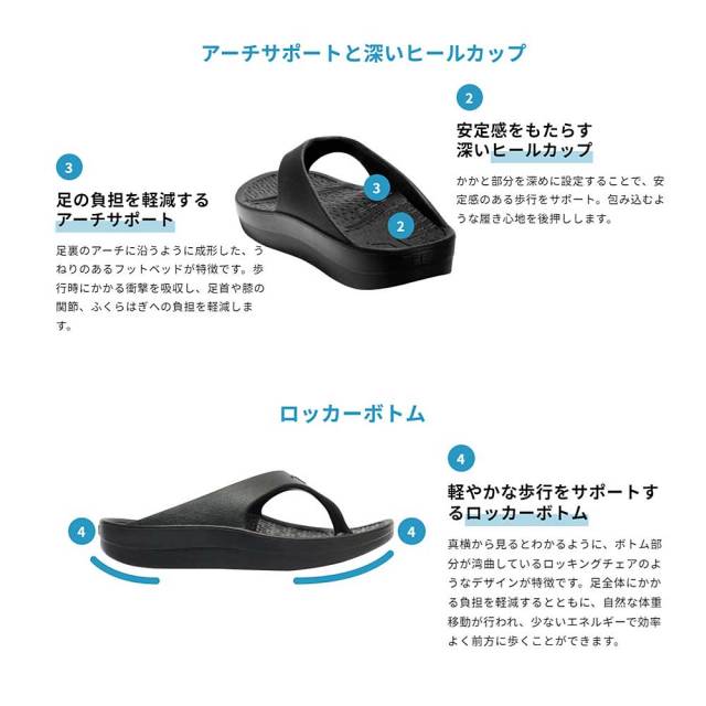 ロッカーボトム形状による自然な体重移動で、軽やかな歩行をサポート。