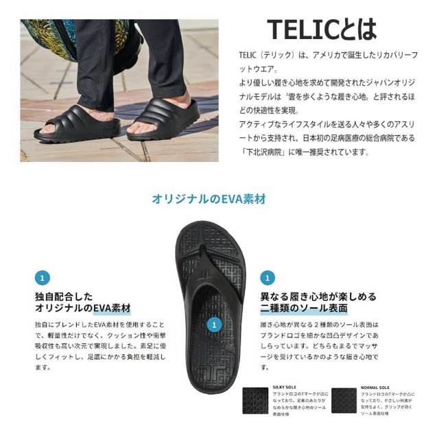 【ギフト不可】テリックは、アメリカで誕生したリカバリーフットウエアです。より優しい履き心地を求めて開発されたジャパンオリジナルモデルは「雲を歩くような履き心地」と評されるほどの快適性を実現。アクティブなライフスタイルを送る人々や多くのアスリートから支持され、日本初の足病医療の総合病院である「下北沢病院」に唯一推奨されています。
