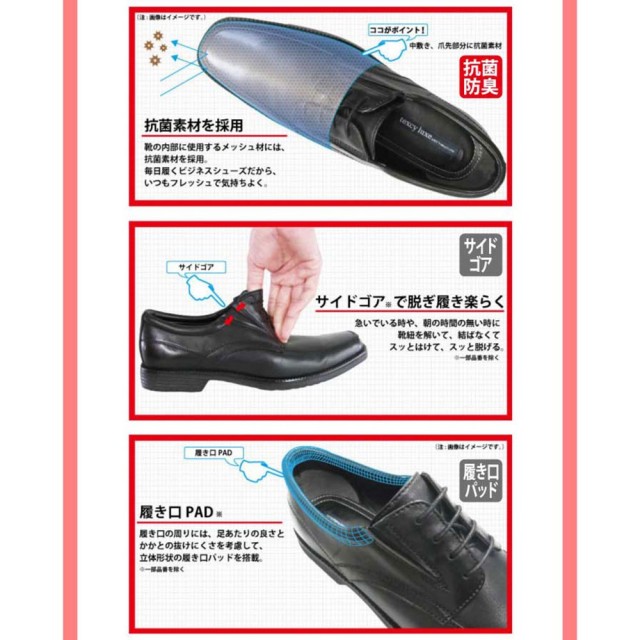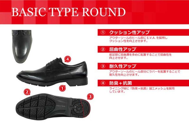 歩きやすさ、動きやすさを兼ね備えた、軽量設計のビジネスシューズです。リーズナブルな価格ながら本革を使用。ソールのカカト部分にはラバーを配置し耐久性も向上。靴内部のメッシュ材には抗菌素材を採用。毎日履くビジネスシューズをいつもフレッシュで気持ちよく。